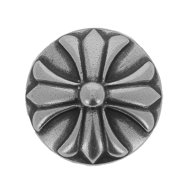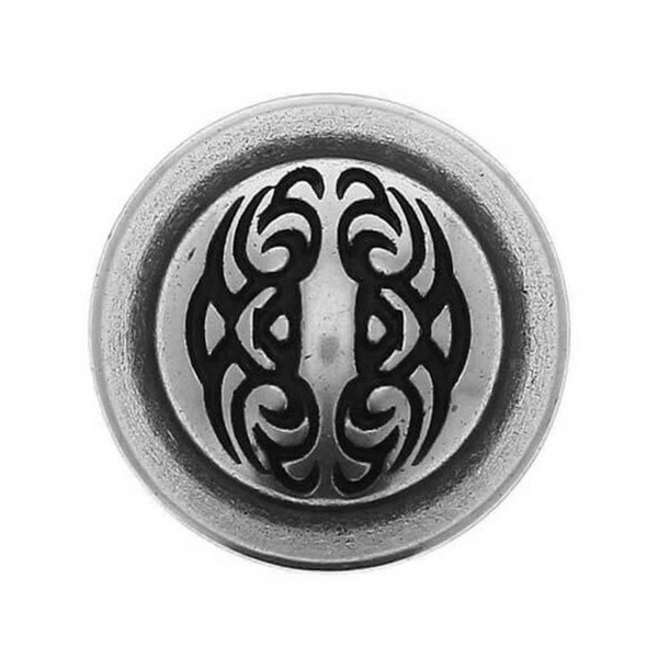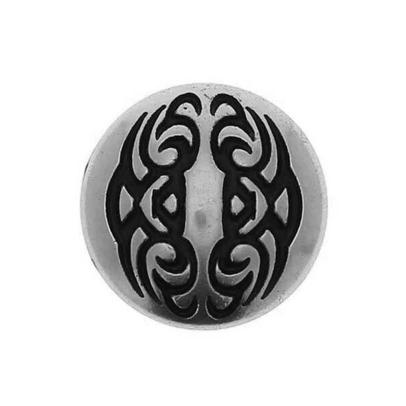 Personalisieren Sie Ihre Kreationen mit diesem aufschraubbaren Concho mit Tribal-Muster in Antik-Silber und schwarzem Design.