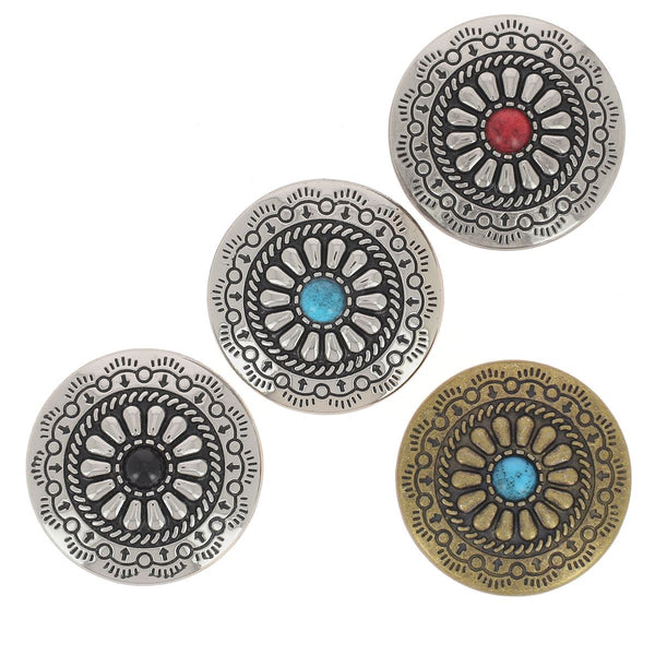 Erstellen Sie mit diesem runden, aufschraubbaren Concho einzigartige Verzierungen für Ihre Lederkreationen.