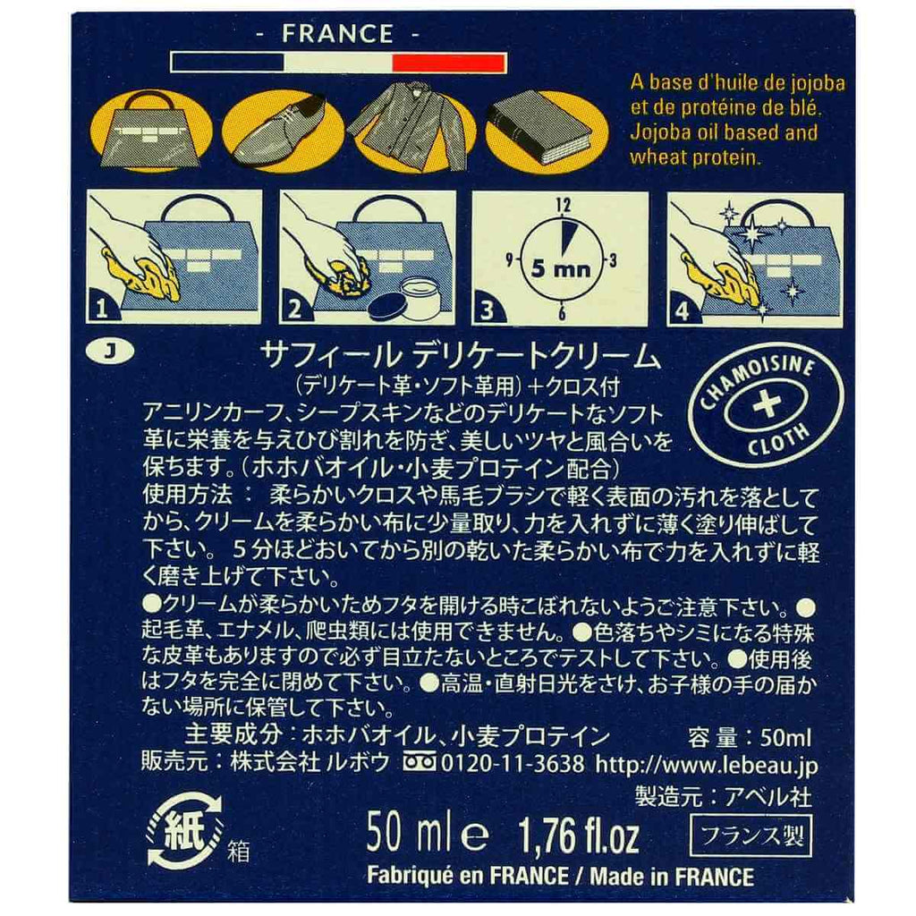 Zusammensetzung : Dieses auf Jojobaöl und Weizenprotein basierende Produkt ist für die Pflege Ihres empfindlichsten Leders unverzichtbar geworden.