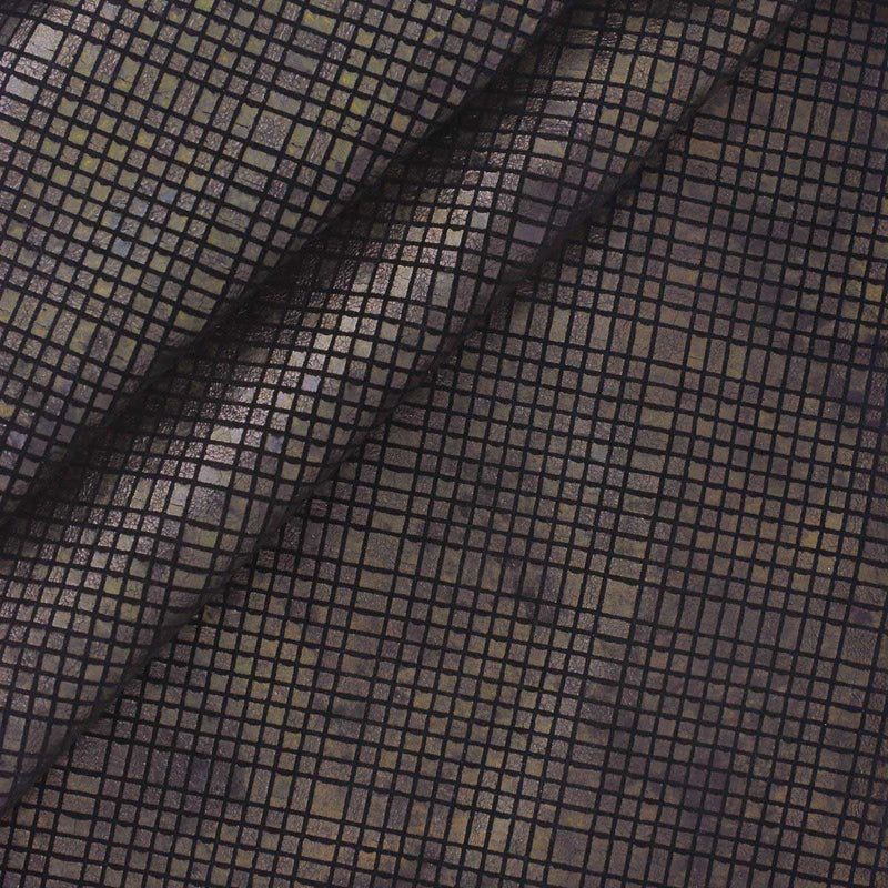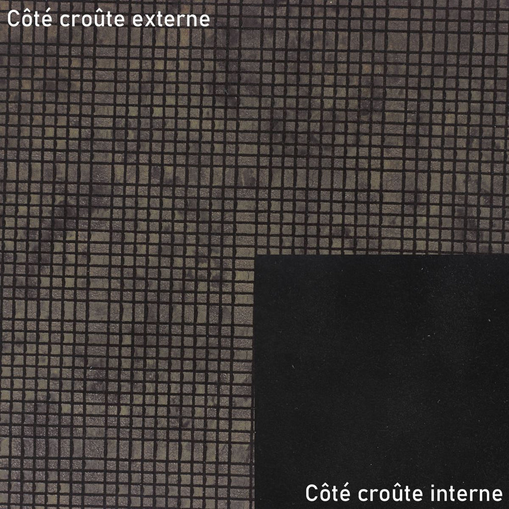 Das bronzefarbene Gittermuster auf dieser schwarzen Wildlederkruste verleiht diesem Leder einen ausgefallenen Stil und bleibt dabei schick. Dieses hochwertige Spaltleder aus einem Lagerverkauf eignet sich ideal zur Herstellung von Taschen, Geldbörsen, Dekorationen usw.