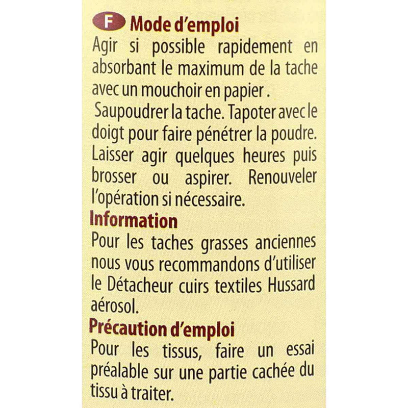 Information : Für alte Fettflecken empfehlen wir die Verwendung des Fleckenentferners für Ledertextilien – 150 ml Aerosol – Hussard Avel (Ref. WA034 ).