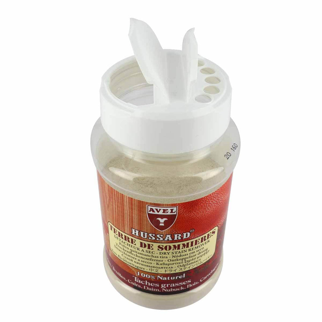 Dank seiner großen Finesse wirkt Terre de Sommières tief und effektiv, ohne Ringe zu hinterlassen oder Farben zu verändern, und entfernt Fettflecken auf vielen Materialien.