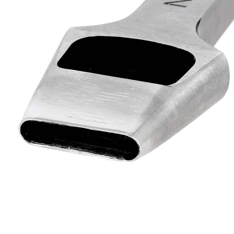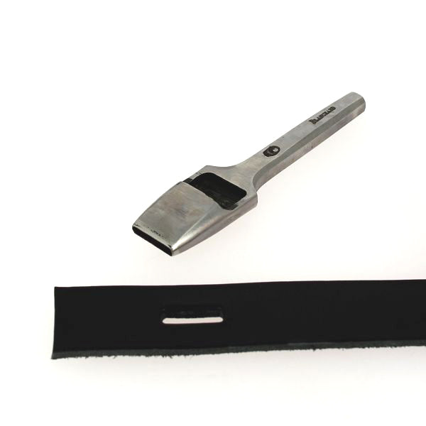 Mit diesem Locher können Sie ein längliches Loch stanzen, durch das die Gürtelschnalle passt.