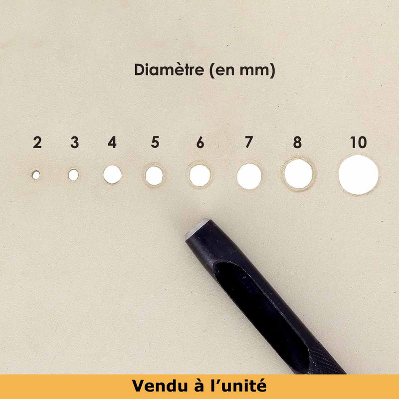 - Bei der Verwendung von Stempeln mit kleinem Durchmesser (weniger als 4 mm) kann es je nach verwendetem Leder (Dichte, Dicke usw.) dazu kommen, dass der Lederzuschnitt im Auslaufkanal des Werkzeugs hängen bleibt. Um eine starke Verstopfung zu vermeiden, empfehlen wir, die Aussparungen regelmäßig mit einem kleinen Metallstäbchen (Rundnadel, Rundahle etc.) zu entfernen.