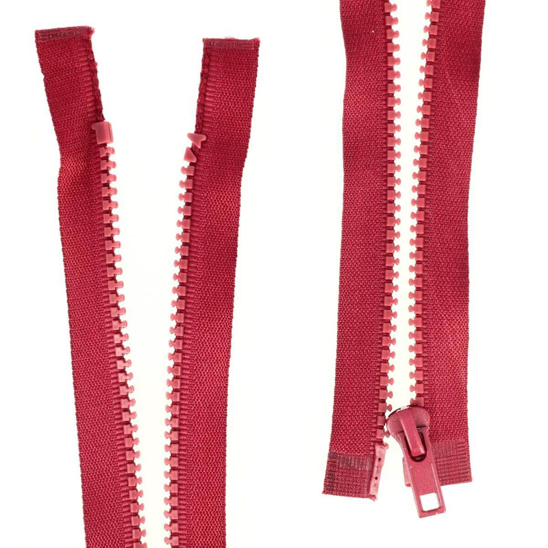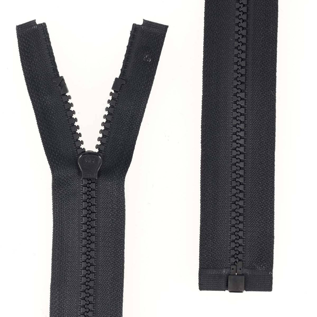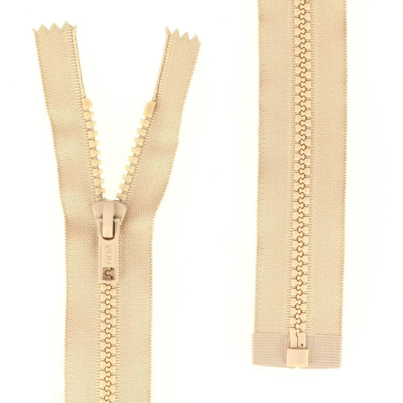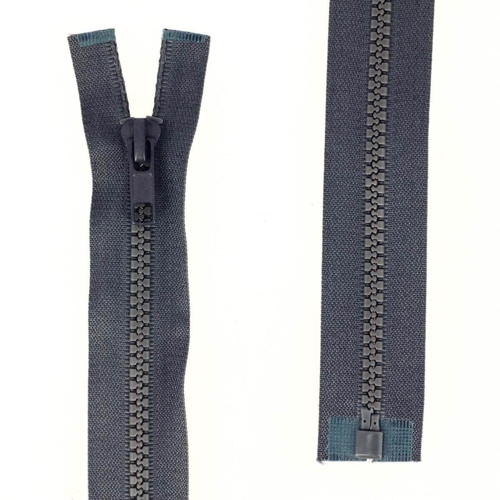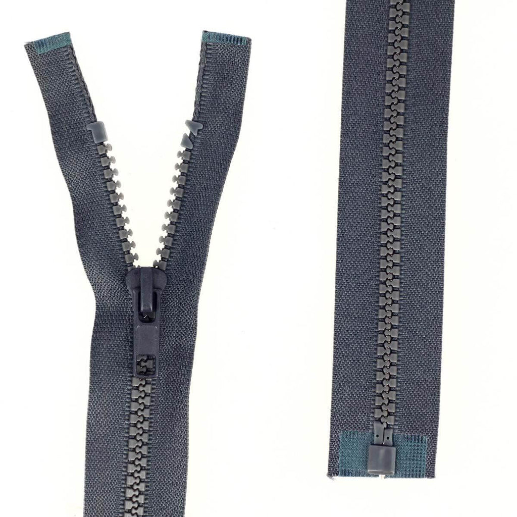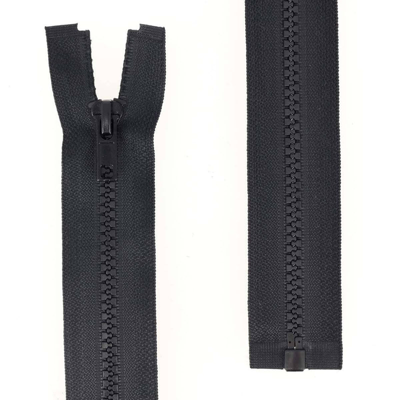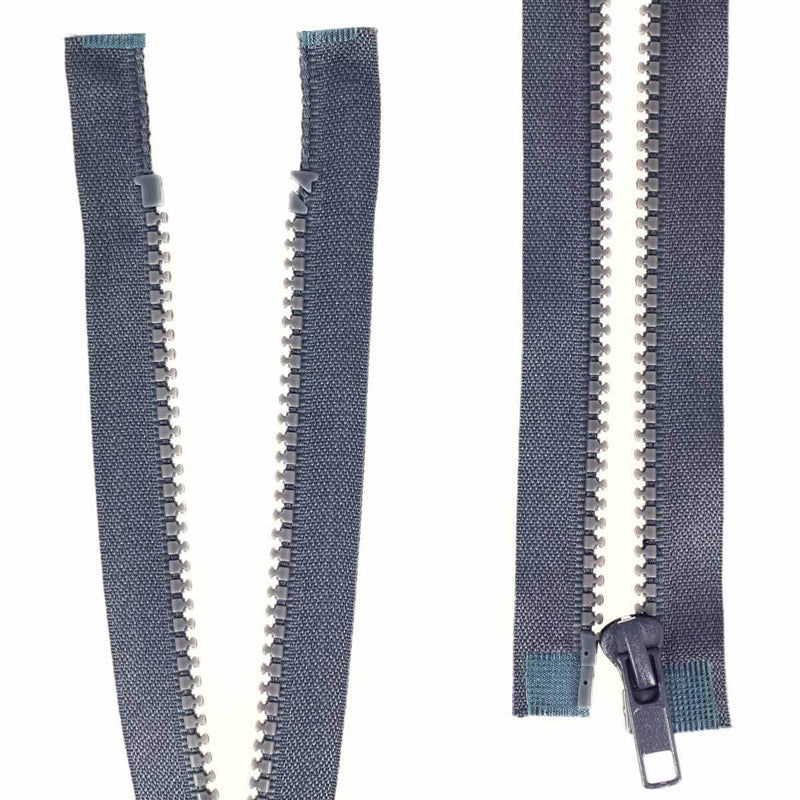 Geteilter Reißverschluss (in zwei Teile teilbar) mit Kunststoffnetz.