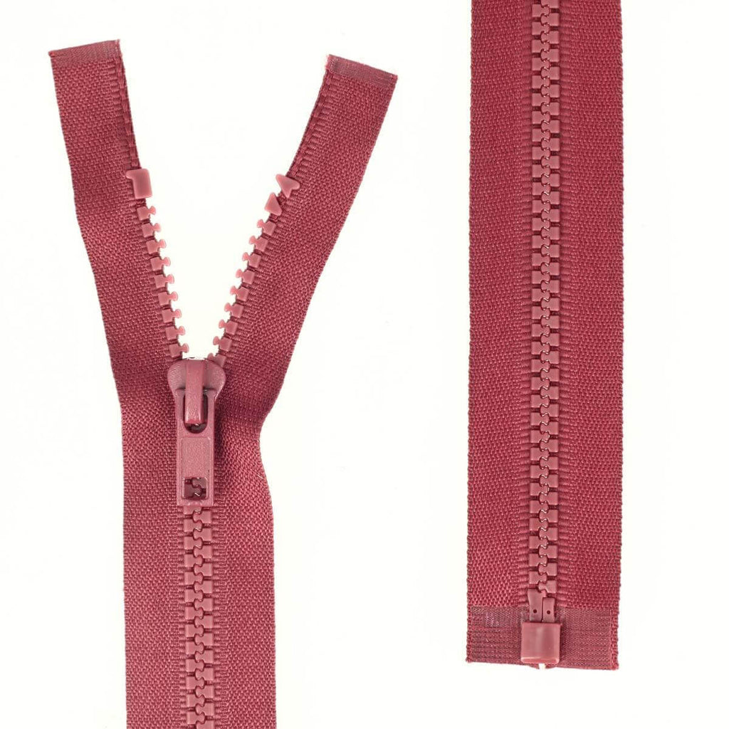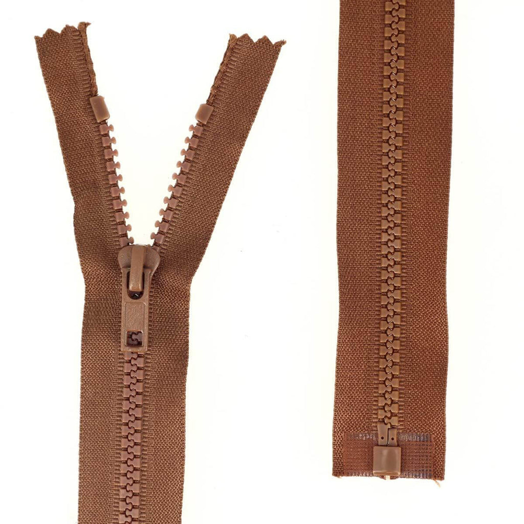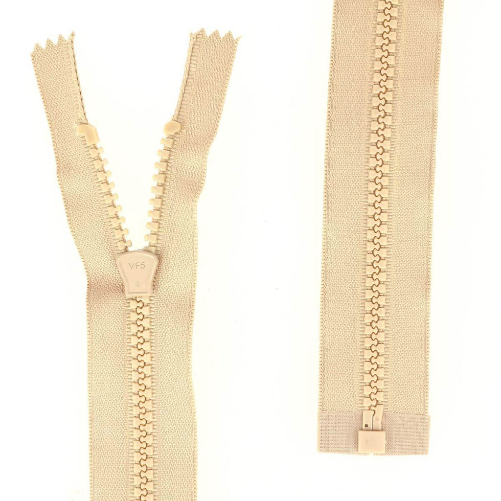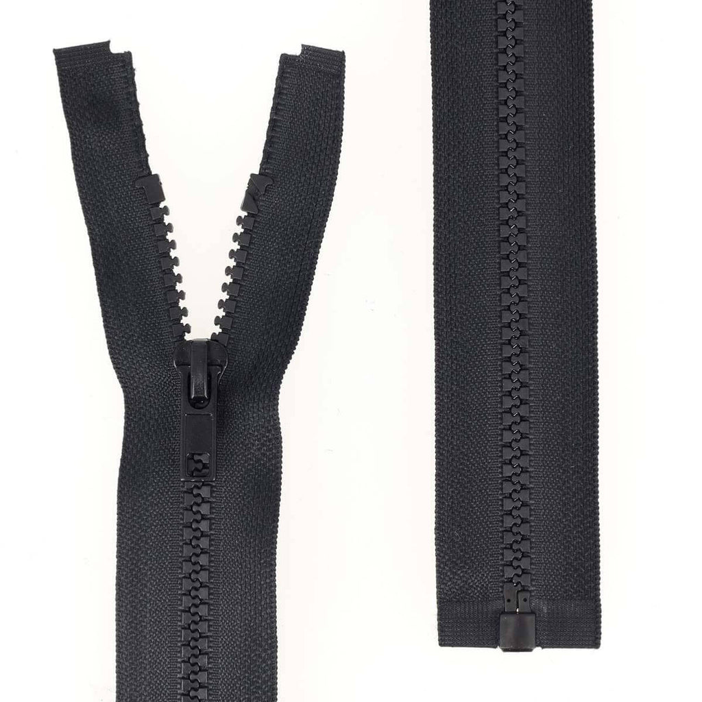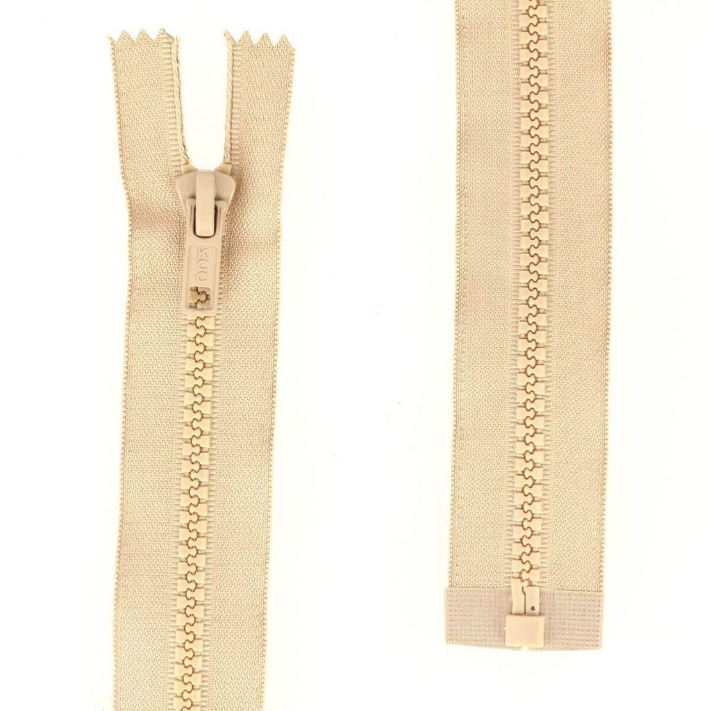 Geteilter Reißverschluss (in zwei Teile teilbar) mit Kunststoffnetz.
