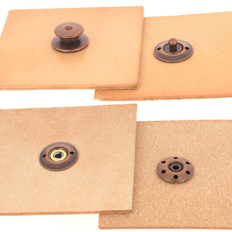 Wird mit 2 Standardscheiben geliefert, mit denen Sie eine Lederdicke zwischen 0,8 und 3,5 mm crimpen können.