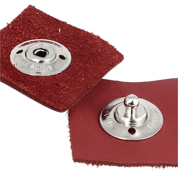 - Machen Sie in jedes Lederstück ein Loch mit einem Durchmesser von 10 mm.