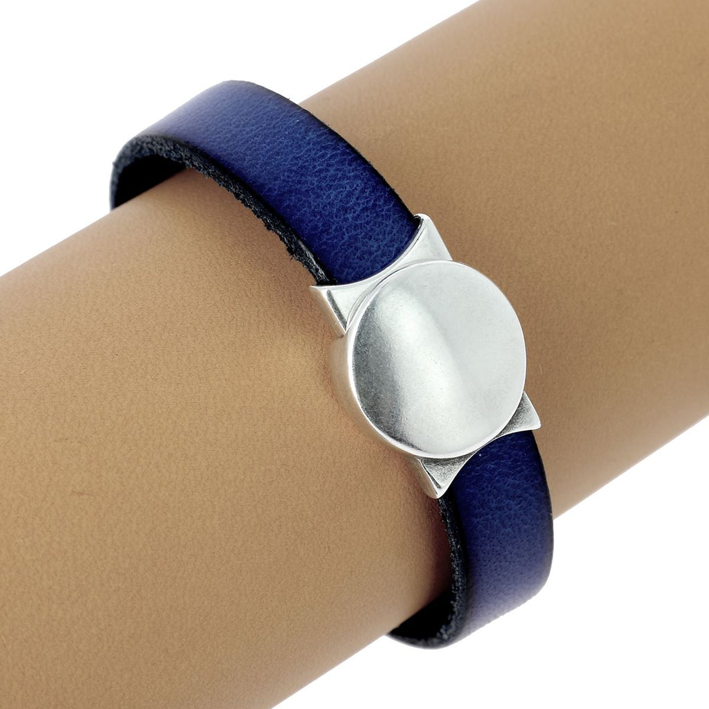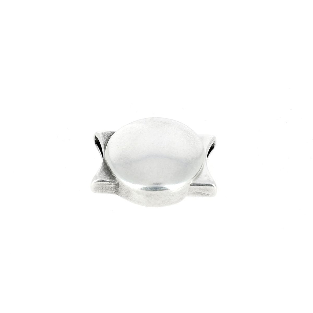 Sie werden diesen schlichten runden Schmuckverschluss lieben. Mit diesem Verschluss können Sie ein Armband aus einem flachen Lederband mit einer Breite von 10 mm und einer Dicke von maximal 2,2 mm herstellen. Die beiden Teile des Verschlusses werden mittels Magnet verbunden.Material: Zamak