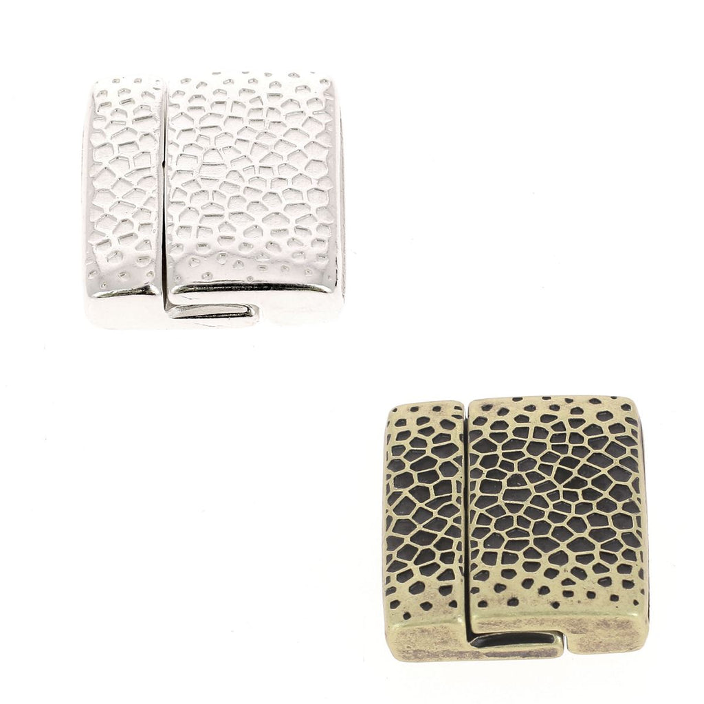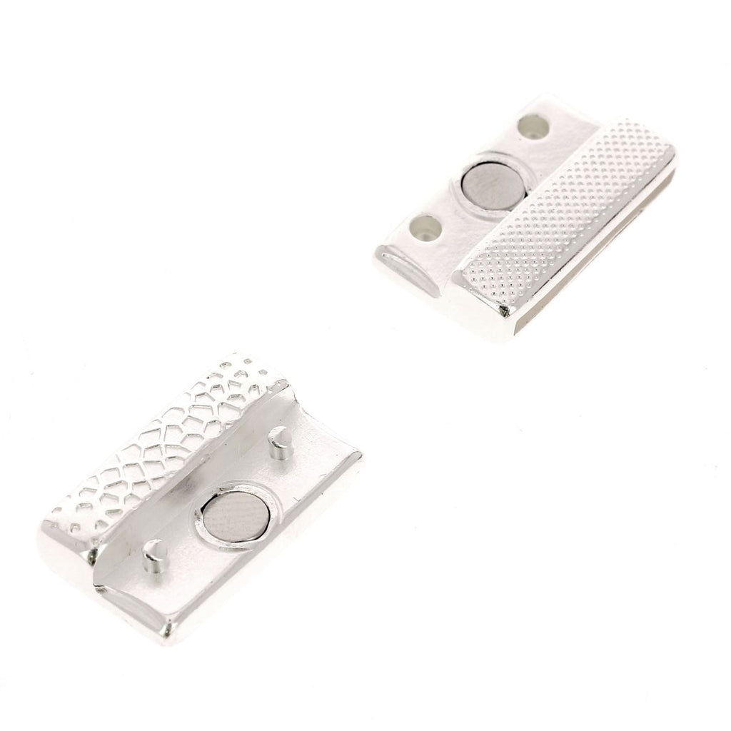 Lassen Sie sich von diesem rechteckigen Schmuckverschluss mit erhabenen Voronoi-Polygonmustern verführen. Mit diesem Verschluss können Sie ein Armband aus einem flachen Lederband mit einer Breite von 20 mm und einer Dicke von maximal 2,3 mm herstellen. Die beiden Teile des Verschlusses werden mittels Magnet verbunden.Material: Zamak