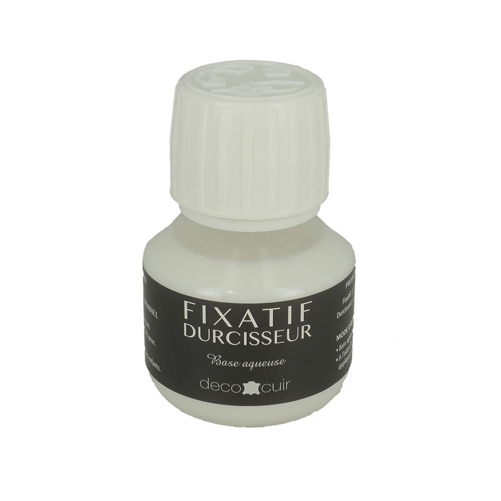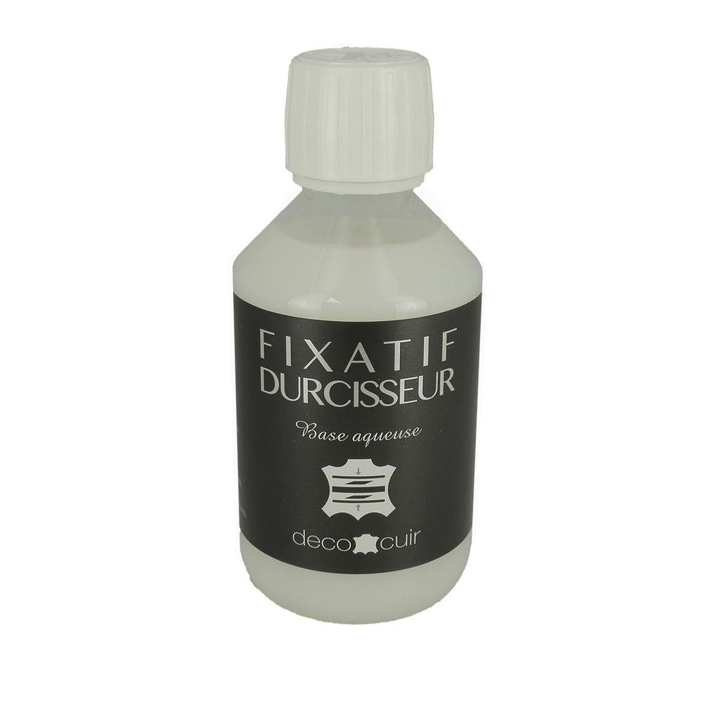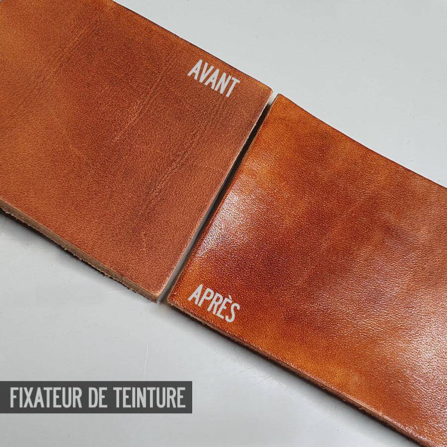 Fixiermittel : Es fixiert die Farben von pflanzlich gegerbtem Leder. Außerdem schützt es das Leder, indem es es wasserabweisend macht.