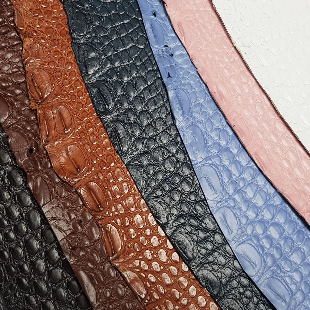 Krokodilleder hat eher quadratische Schuppen, Kaimanleder hingegen dreieckige. Leder aus Aquakultur ist von höherer Qualität, da es weniger Narben aufweist.