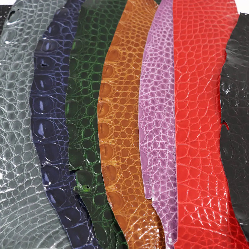 Sie können die Farbe Ihrer Wahl aus dem Alligator-Sortiment (matt oder glänzend) oder dem hochwertigen vollnarbigen Rindsleder SATINLYS (11 Farben) auswählen.