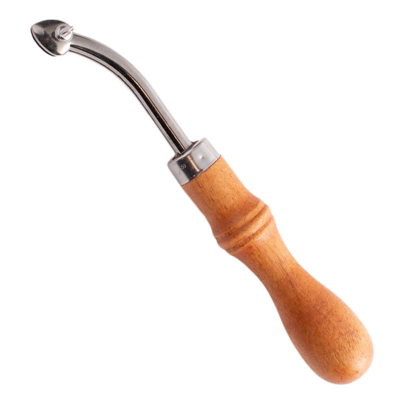 Mit diesem Metallformer können Sie parallele Linien an der Kante eines Lederstücks zeichnen. Diese Linien dienen als Orientierungshilfe zum Markieren der Position der Nählöcher oder einfach zum Zeichnen einer dekorativen Linie.