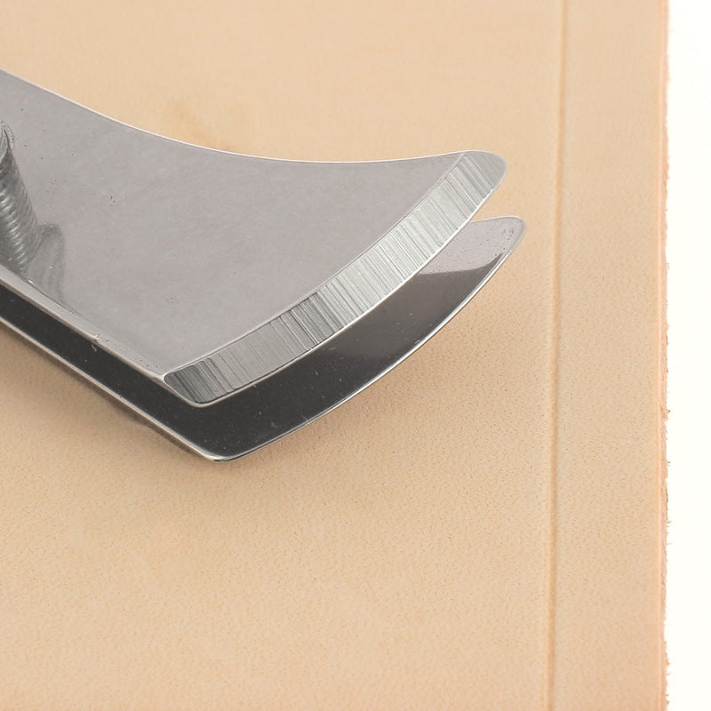 Mit ersterem können Sie parallel zu den Kanten von Lederstücken Linien zeichnen, um eine Nahtlinie zu zeichnen oder eine dekorative Linie (Zierlinie) zu erstellen. Wir empfehlen die Verwendung dieses Werkzeugs auf pflanzlich gegerbtem Leder. Bei mineralgegerbtem Leder (Chrom) ist die Markierung weniger deutlich und verblasst mit der Zeit, daher müssen Sie ein Einfädeleisen (Heißmarkierung) verwenden. Jeder Former verfügt über 4 Spaltgrößen, mit Ausnahme der einstellbaren Metallformer, bei denen Sie Ihren eigenen Spalt wählen können.