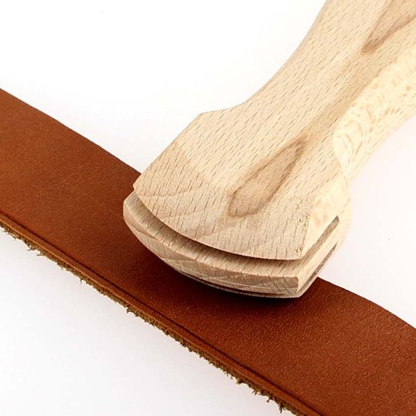 Mit ersterem wird eine Linie parallel zur Kante eines Stücks pflanzlich gegerbten Leders gezogen, die dann als Orientierungshilfe zum Markieren der Position der Nählöcher dient.