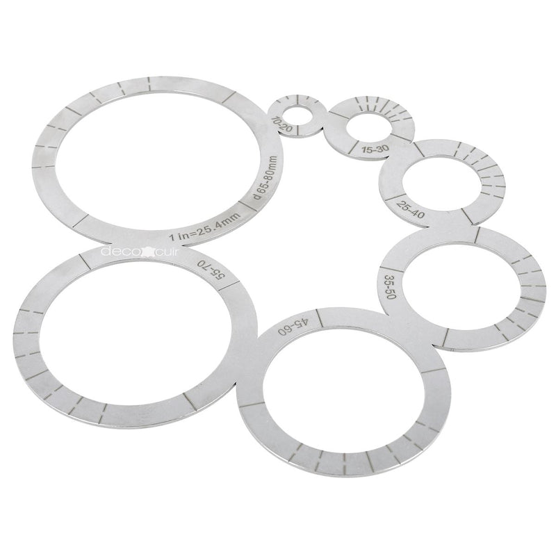 Deco Cuir bietet Ihnen diese Edelstahlschablone zum einfachen und schnellen Erstellen von Kreisen unterschiedlicher Größe auf Ihrem Leder oder Ihrem Muster.