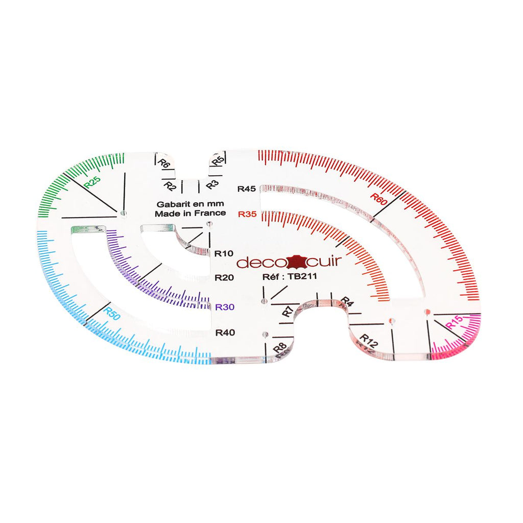Dieses Werkzeug ist schnell und einfach zu verwenden: Wählen Sie aus den vielen verfügbaren Radien (R2 bis R60) die Kurve aus, die am besten zu Ihrer Kreation passt, und folgen Sie dann der Kurve, um einen perfekt abgerundeten Winkel zu erhalten!