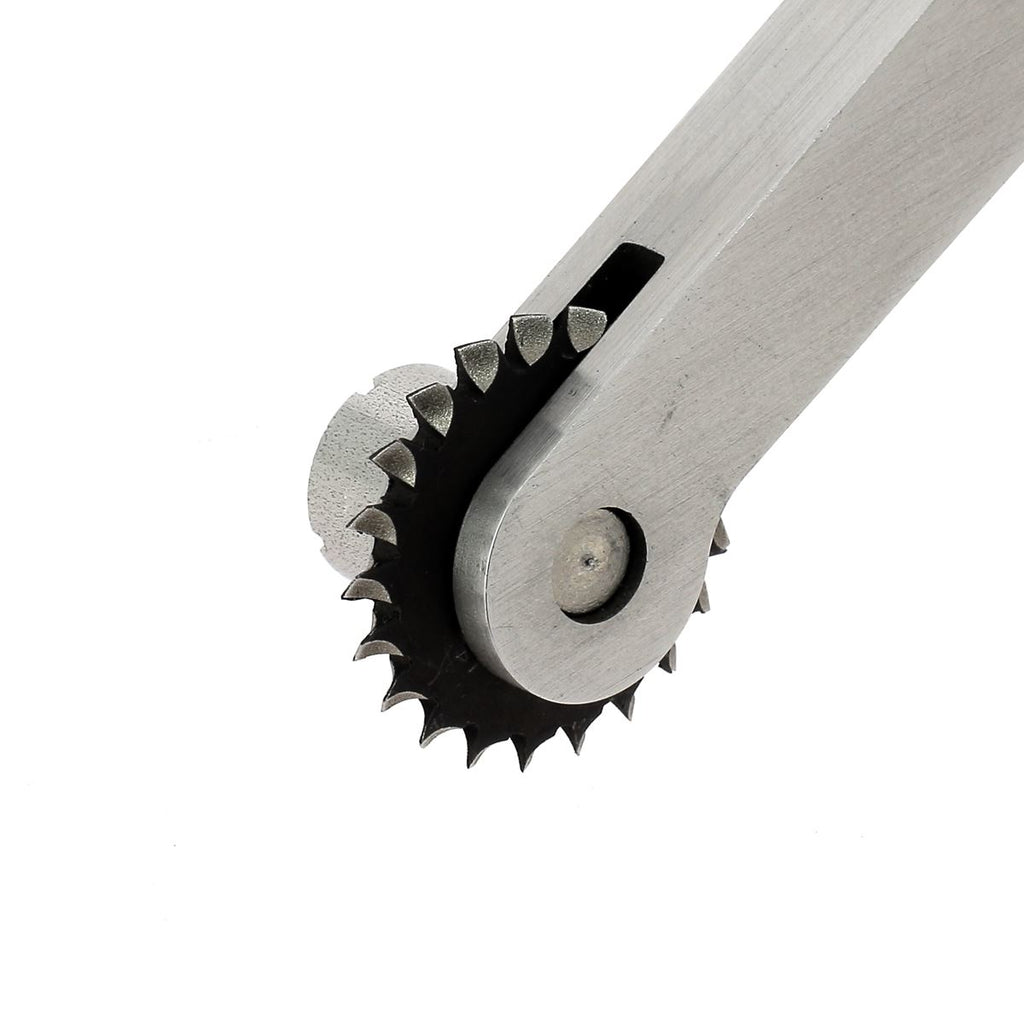 Diese Radkralle dient zum Markieren von Stichen beim Handnähen . Es wird mit einem Rad Nr. 9 mit einem Achsabstand von 3,0 mm verkauft. Das Rad kann durch Lösen der seitlichen Schraube per Hand oder mit einem Schlitzschraubendreher (nicht im Lieferumfang enthalten) entfernt werden. Auf unserer Seite finden Sie verschiedene Distanzräder zum Verkauf.
