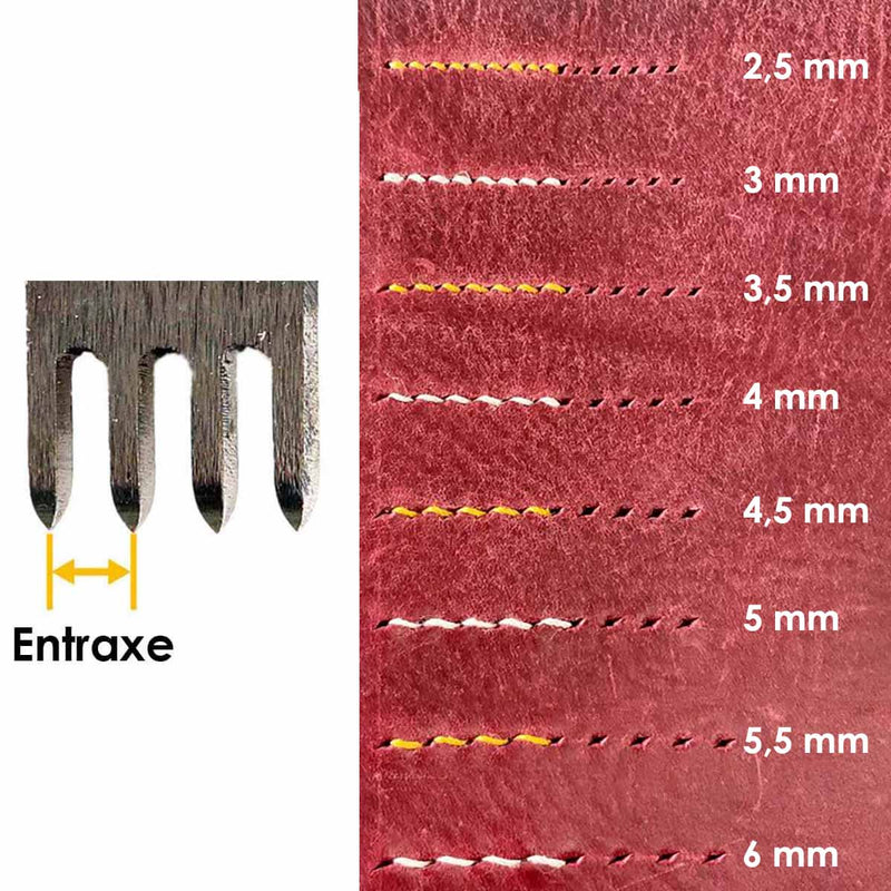 Mit diesen markanten Krallen werden die Stichabstände auf dem Leder markiert, um schöne, gleichmäßige Sattelstichnähte zu erhalten. Die Markierung hat die Form einer Raute ( Diamantspitze ).Der Mittenabstand zwischen den einzelnen Punkten beträgt 4 mm . Ideal für Ihre Lederarbeiten.