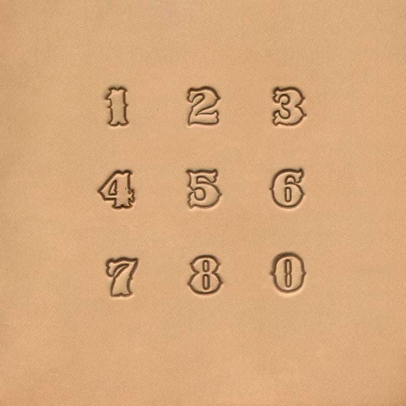 Dieses Stempelset enthält 9 Zahlen von 0 bis 8 .