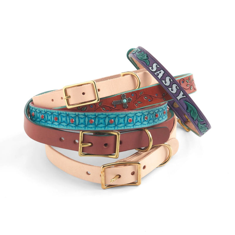 Lederhalsband für Tiere zum Selbstzusammenstellen und Personalisieren durch Anbringen von Spike-Nieten, Färben, Hinzufügen des Vornamens mit unseren gestempelten Buchstaben oder Prägen mit Stempeln... (Personalisierungswerkzeuge und Zubehör separat erhältlich).