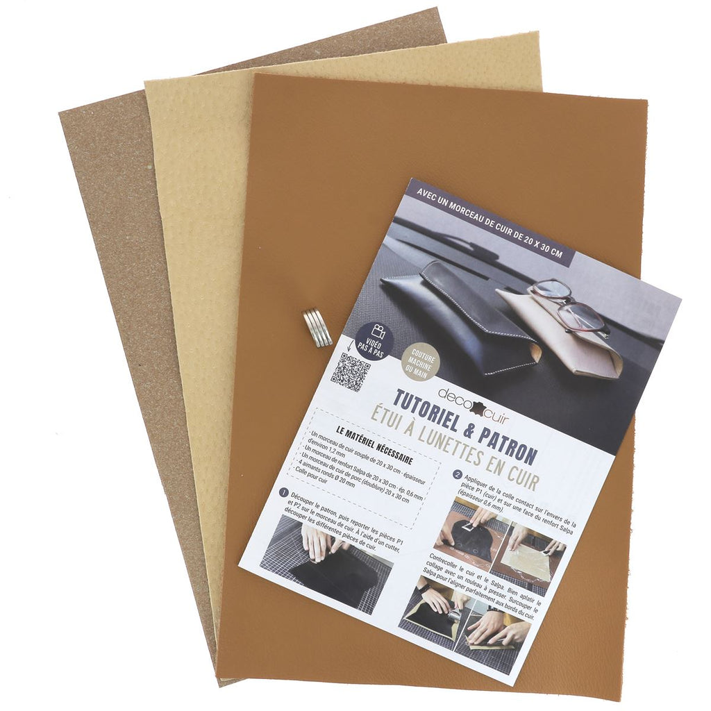 Mit diesem DIY-Set gestalten Sie Ihr eigenes Brillenetui aus hellbraunem Leder und haben Ihre Brille immer griffbereit. Ein ebenso stilvolles wie praktisches Accessoire zur Aufbewahrung und zum Schutz Ihrer Sonnenbrille oder Brille.