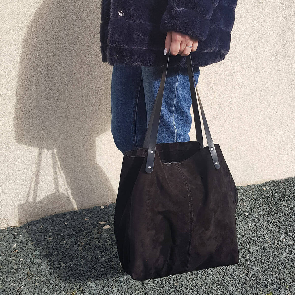 Lernen Sie, wie Sie Ihre Einkaufstasche aus Leder (oder Spaltleder) nähen! Diese Tasche wird mit einer Nähmaschine genäht; das ausgewählte Leder ist weich (erfordert einen Doppeltransport, eine spezielle Ledernadel und einen Teflonfuß).