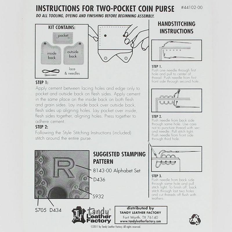- eine englische Bedienungsanleitung, die Ihnen Schritt für Schritt zeigt, wie Sie die Geldbörse zusammenbauen.