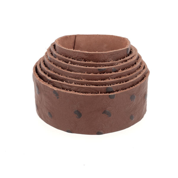 Hochwertige, dunkelbraune, pflanzlich gegerbte Rinderschulterstreifen . Diese Streifen stammen aus Premium-Rinderschultern der Gerberei Masure in Belgien. Die Narbung ist künstlich und wird durch Prägung erzeugt.