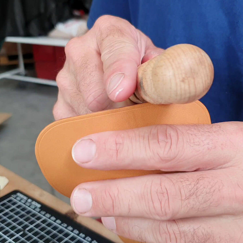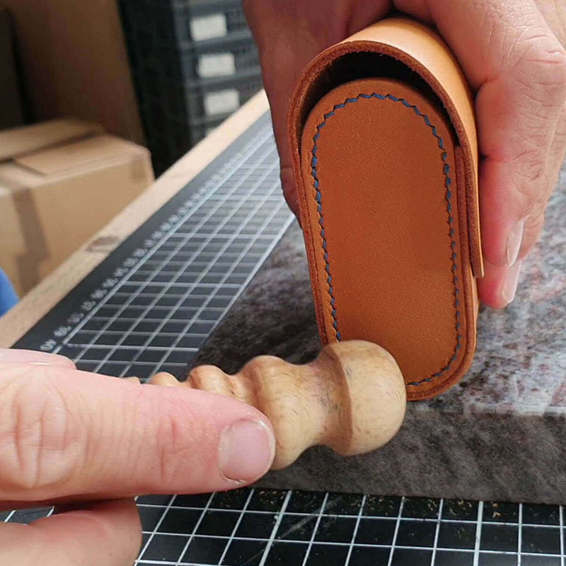 Mit dem Glätter können Sie Ihre Lederstücke polieren und ihnen so einen Glanz verleihen.