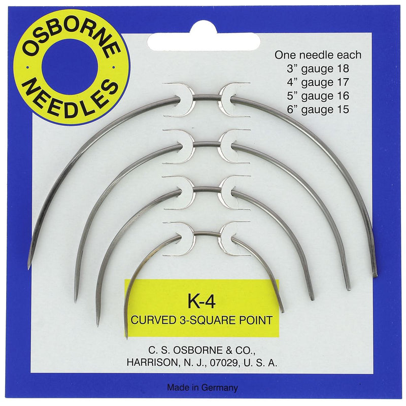 Set mit 4 gebogenen Nadeln mit Dreiecksspitze zum Nähen von Leder:- Nadelbreite: 1,5 mm - Länge: 45 mm
