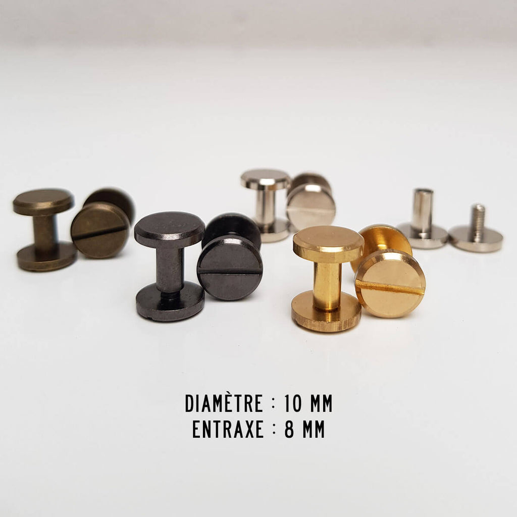 Einfache Montage : Machen Sie mit einem Rundstanzer ein Loch mit 4 mm Durchmesser in das Leder und befestigen Sie dann die Chicago-Schrauben mit einem Schraubendreher.