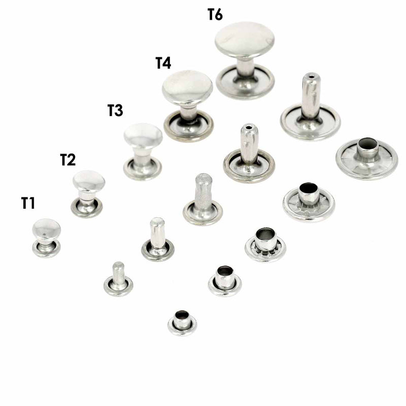 Mit diesen Messingnieten der Größe 2 können Lederstärken zwischen 2 und 4 mm gekräuselt werden.