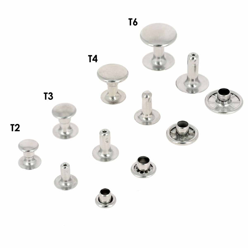 Mit diesen Messingnieten der Größe 2 können Lederstärken zwischen 2 und 4 mm gekräuselt werden.
