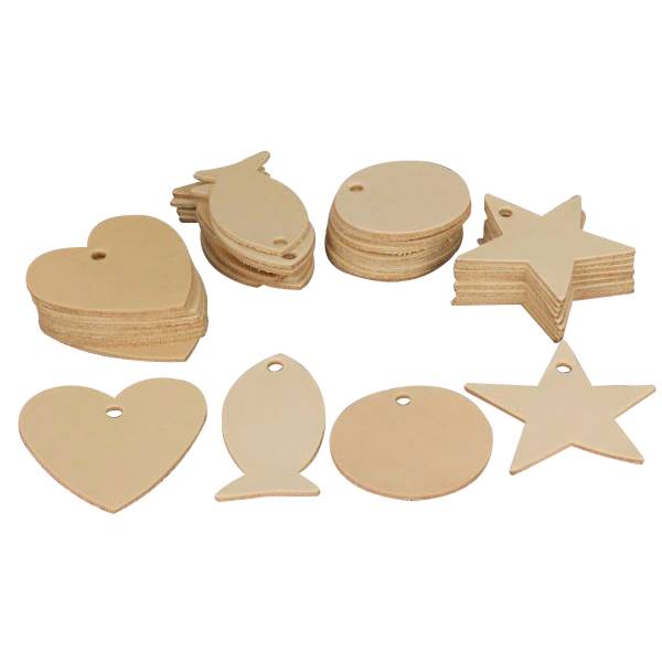 Set mit 40 Schlüsselanhänger-Ausschnitten aus natürlichem, pflanzlich gegerbtem Leder mit Staubnarbung, bestehend aus 10 „GROSSEN RUNDEN“ + 10 „STERNEN“ + 10 „HERZEN“ + 10 „FISCHEN“ Aus natürlichem Pflanzenleder geschnitten, können Sie das Leder färben oder Stempel verwenden, um Ihre eigenen Designs zu erstellen, Vornamen darauf zu schreiben usw.