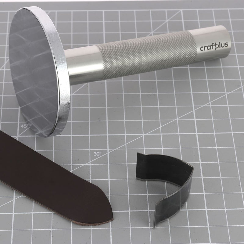 Dieser Edelstahlgriff wird mit der Stahlplatte 3961-03 zum Schlagen von Stanzklingen (separat erhältlich) verwendet. Mit diesem Werkzeug können Sie saubere Schnitte in Ihr Leder machen: Gürtelenden, Ecken, Säume, Formen in kleinen Stücken und vieles mehr.