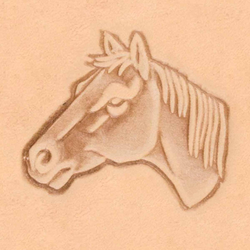 Dieser 3D-Stempel stellt einen nach links blickenden Pferdekopf dar.