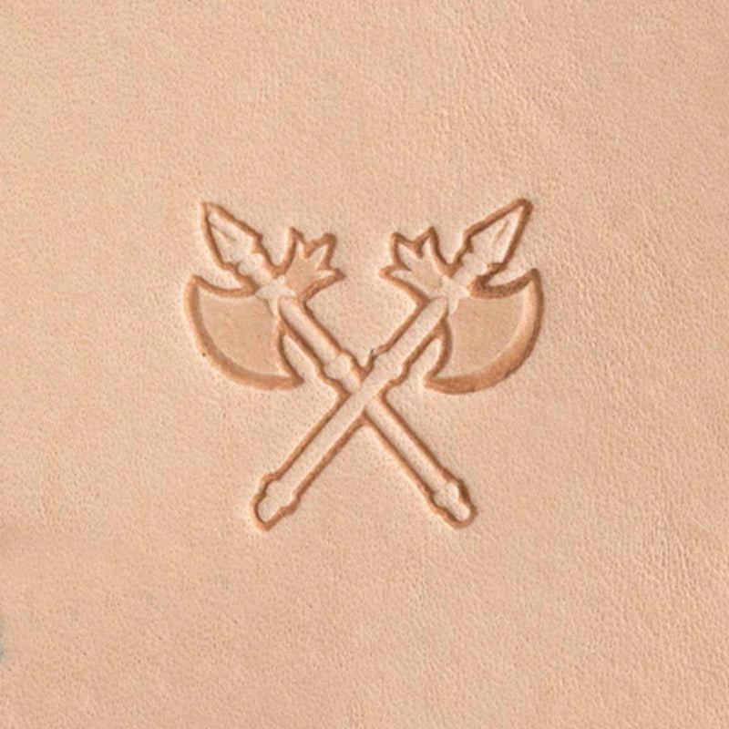 Dieser 3D-Stempel stellt zwei gekreuzte Äxte dar .