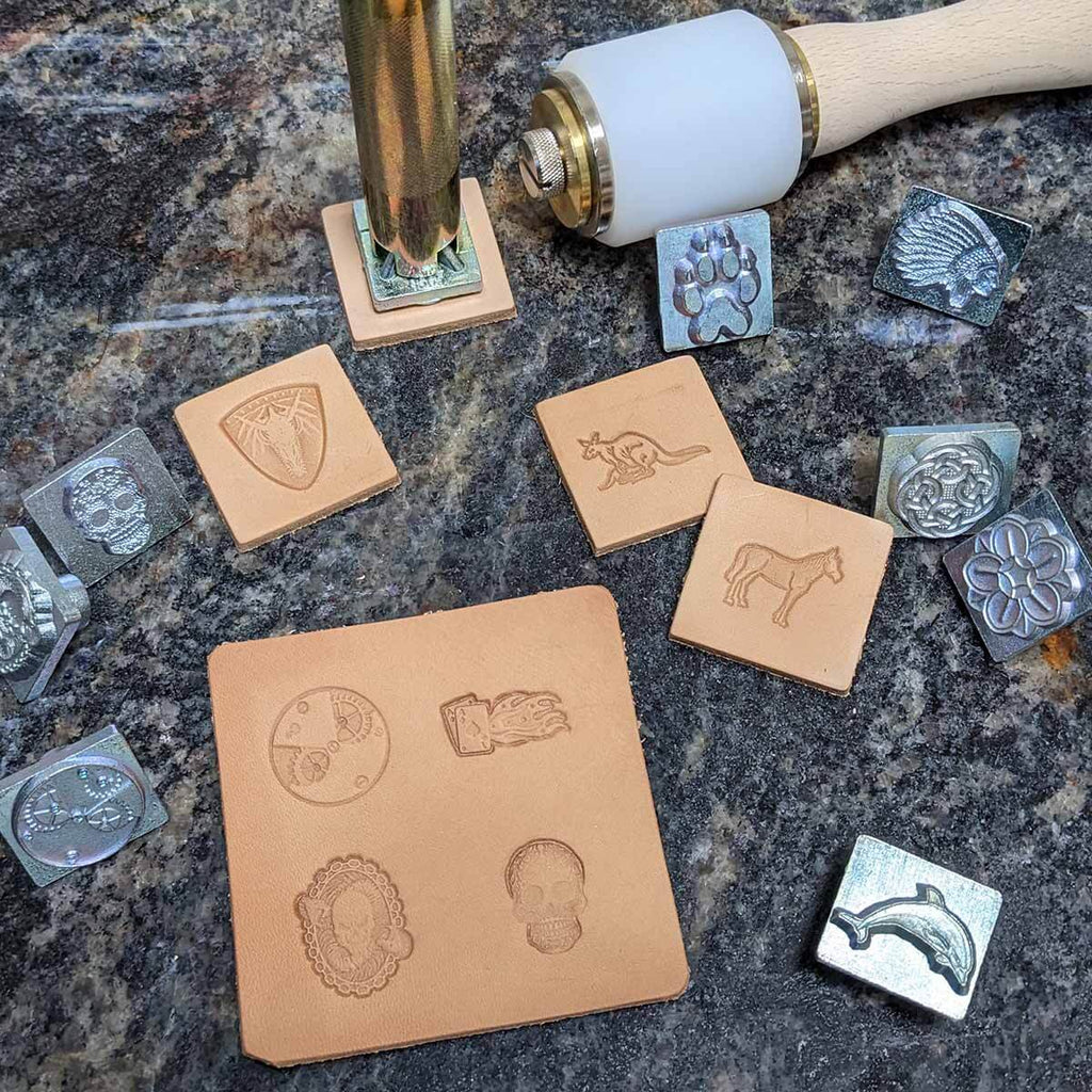 Stempel zur Verwendung auf pflanzlich gegerbtem Leder . Befeuchten Sie Ihr Leder mit einem Schwamm, bevor Sie das Muster markieren