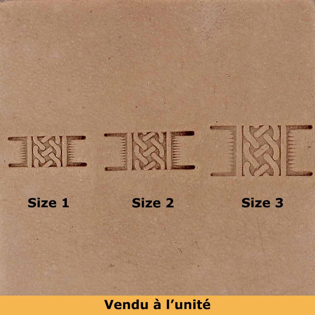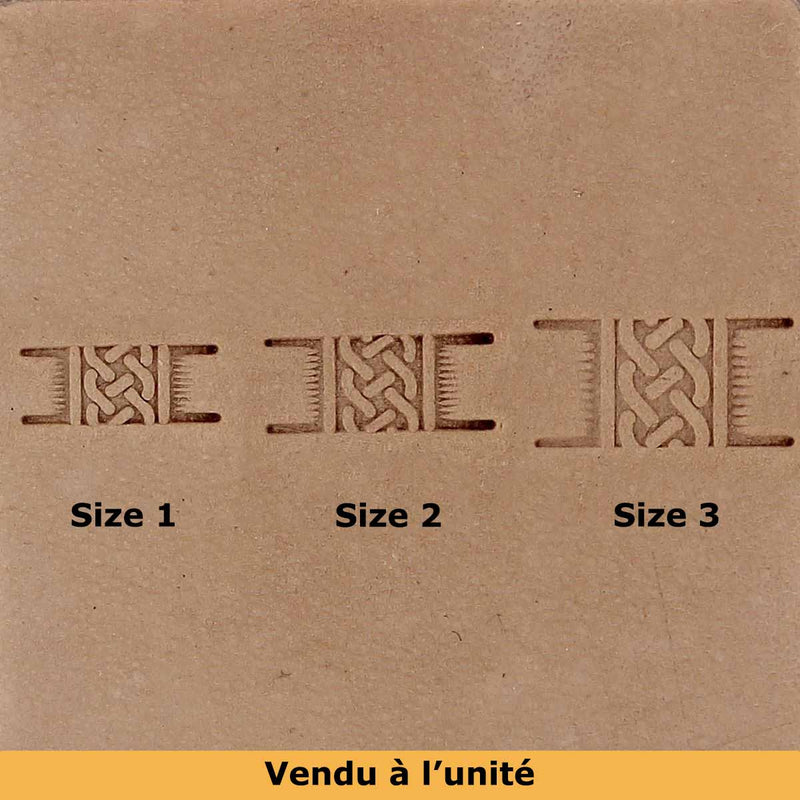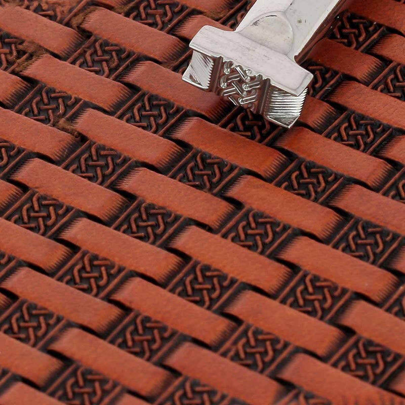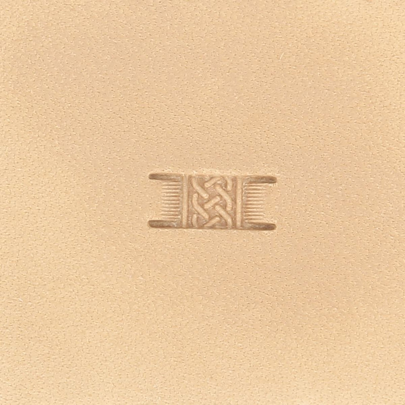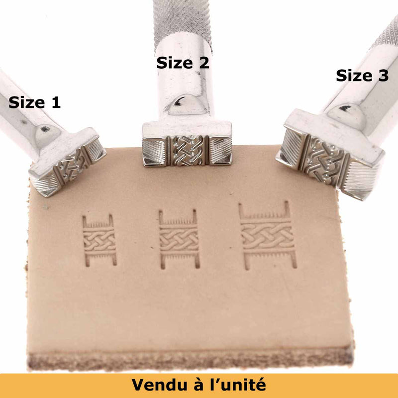 Korbgriffstempel (auch Basketweaves genannt) verdanken ihren Namen dem Muster , das entsteht und an einen geflochtenen Korb erinnert. Sie ermöglichen die schnelle Reproduktion desselben Musters , um einen Materialeffekt zu erzielen und die Beibehaltung einer großen glatten Oberfläche zu vermeiden. Durch ihre Verwendung können Sie auch Lederfehler verbergen. Das durch die Kompression des Materials entstehende Relief verstärkt das Leder und macht Ihre Kreationen unempfindlicher gegen Kratzer. Es gibt sie in vielen Mustern, die jeweils mehrere Breiten haben können. Sie können sie gerade oder schräg verwenden, mit unterschiedlichen Ergebnissen.