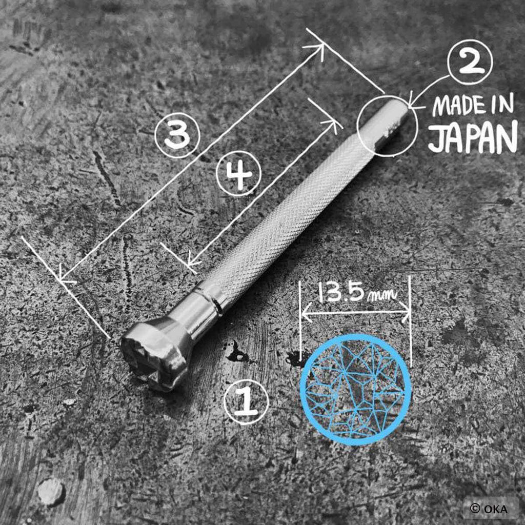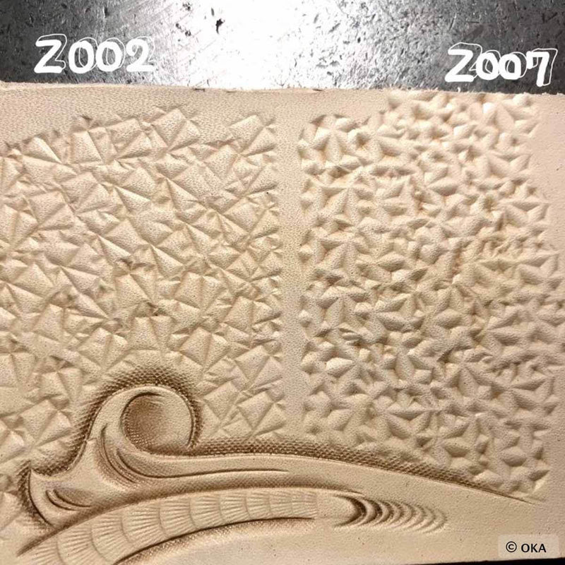 OKA ist ein japanischer Hersteller mit einer Leidenschaft für Lederarbeiten . Es werden hochwertige Werkzeuge hergestellt, die angenehm zu verwenden sind und sich sowohl für Anfänger als auch für erfahrene Benutzer eignen.Die Henkelstempel der Serie Mit Spezial (Z) können Sie dekorative Hintergrundeffekte erstellen. Sie dienen dazu, das gleiche Muster schnell über eine große Fläche zu reproduzieren (siehe Beispiel in Foto 5).