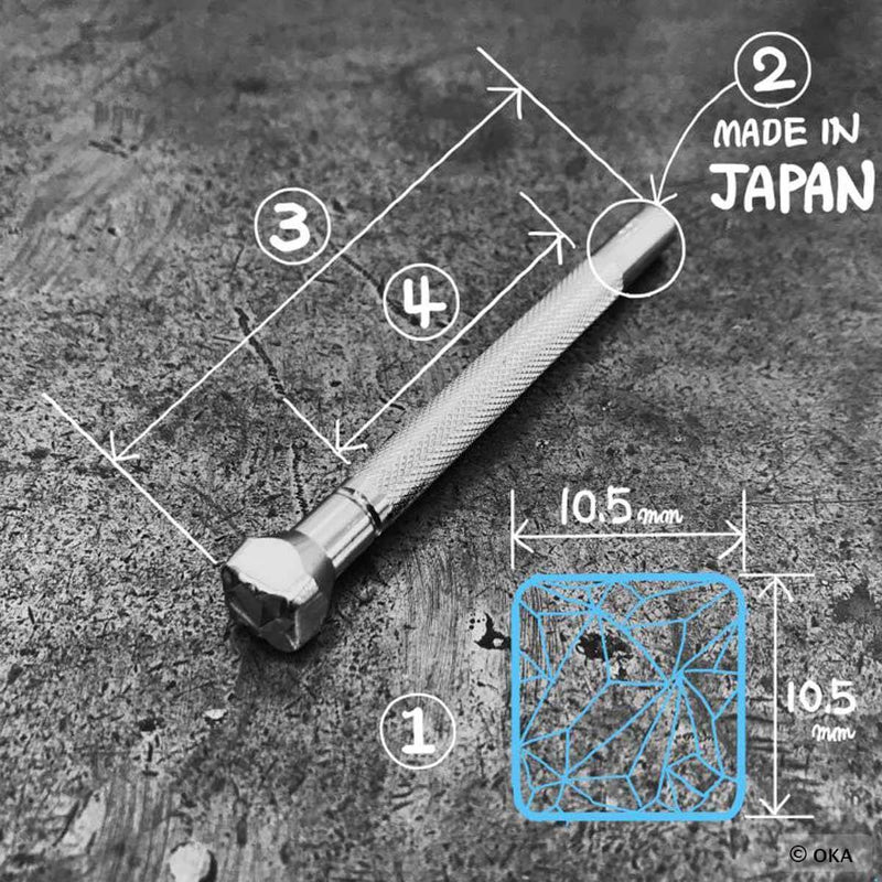 OKA ist ein japanischer Hersteller mit einer Leidenschaft für Lederarbeiten . Es werden hochwertige Werkzeuge hergestellt, die angenehm zu verwenden sind und sich sowohl für Anfänger als auch für erfahrene Benutzer eignen.Die Henkelstempel der Serie Mit Spezial (Z) können Sie dekorative Hintergrundeffekte erstellen. Sie dienen dazu, das gleiche Muster schnell über eine große Fläche zu reproduzieren (siehe Beispiel in Foto 5) .