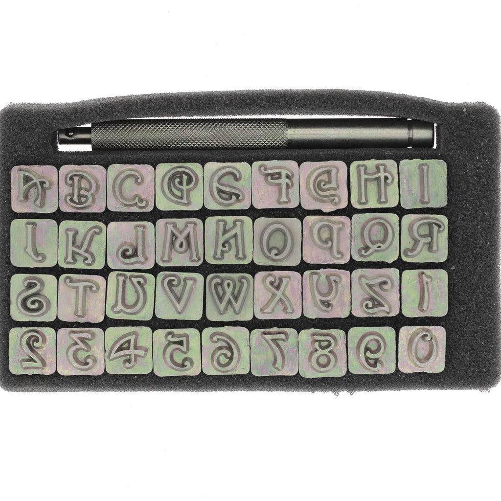 Für eine klare Markierung müssen diese Lederstempel an einem 3D-Stempelgriff befestigt und mit einem ausreichend schweren Hammer auf eine Marmorplatte geschlagen werden.