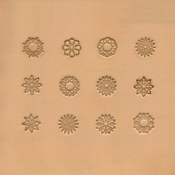 Dieses Stempelset enthält 43 Symbole der amerikanischen Ureinwohner , einen Metallgriff zum Befestigen der Stempel, eine Aufbewahrungsbox und eine Liste, in der der Name und die Bedeutung jedes Symbols auf Englisch aufgeführt sind.