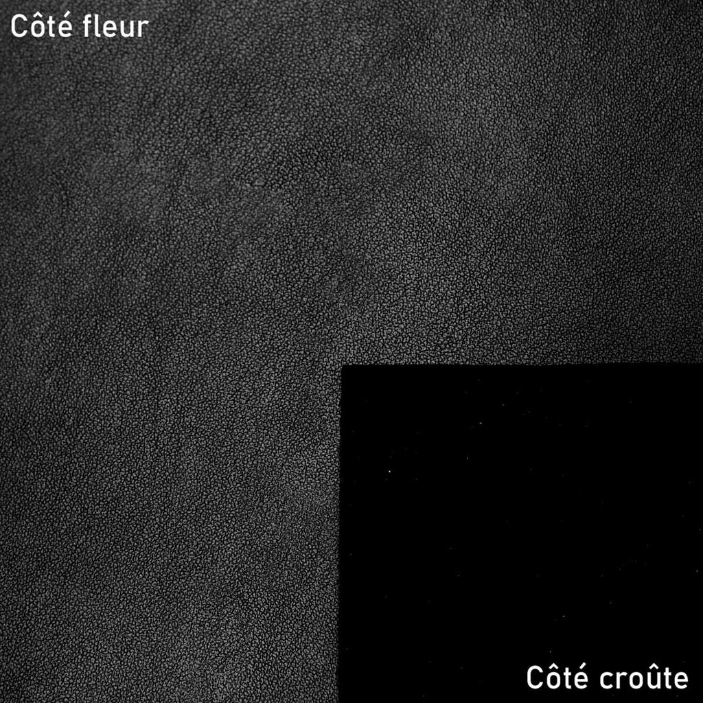 Entdecken Sie dieses glatte, hochwertige italienische Leder . Mit diesem Vollnarbenleder in erhabenem Schwarz und leicht satiniertem Finish können Sie Kreationen schaffen, die Stil und Eleganz ausstrahlen.