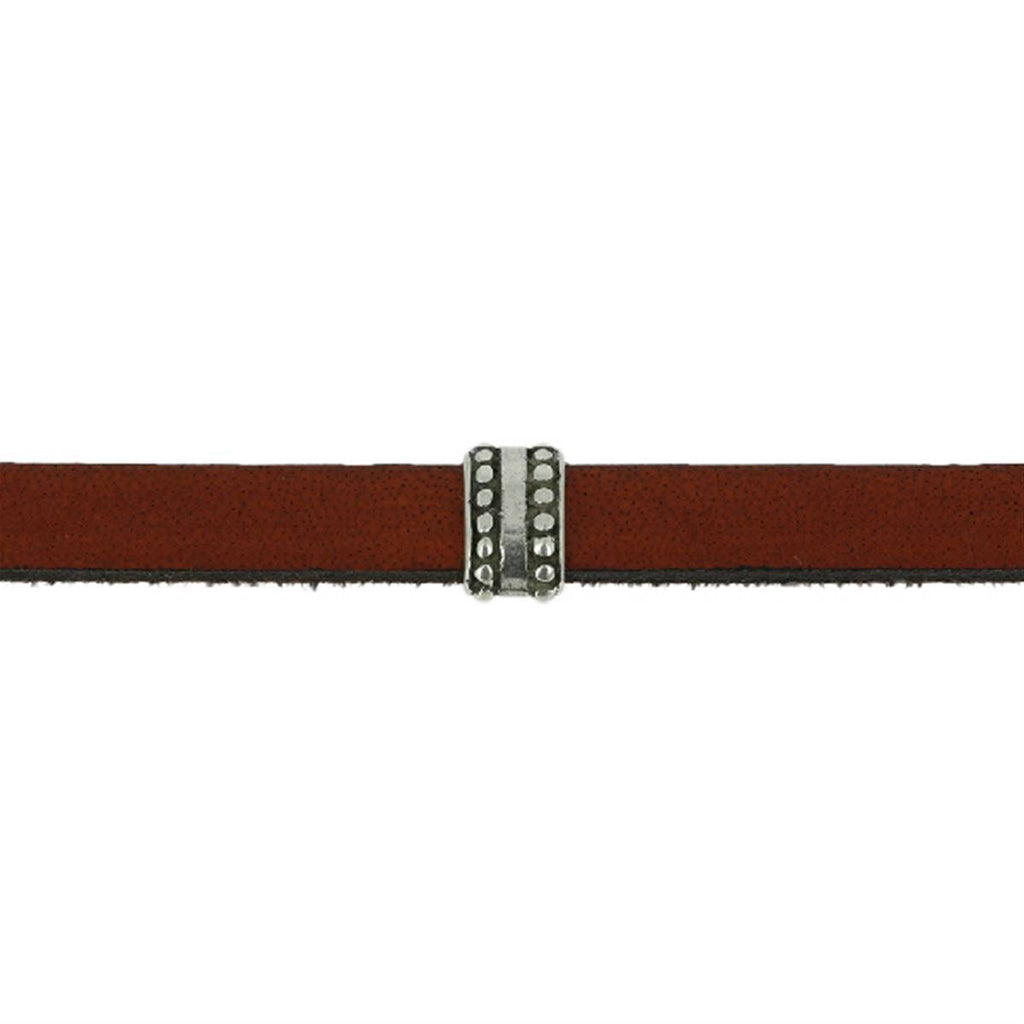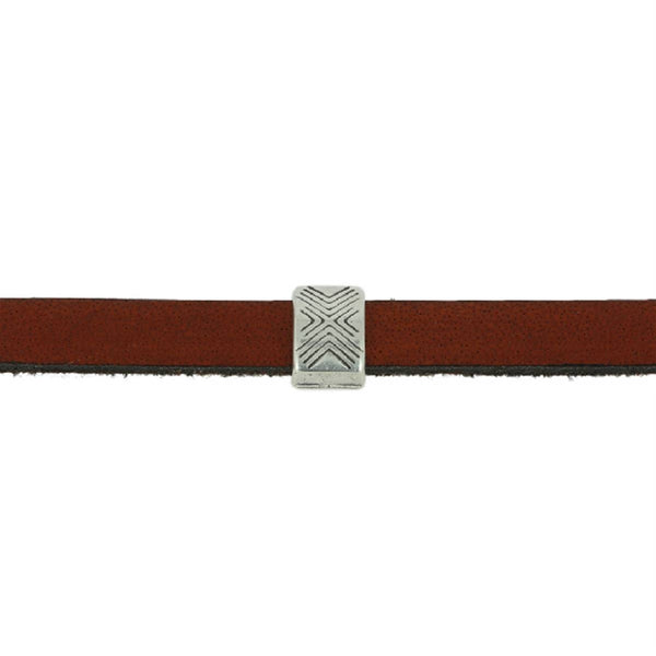 Dünner Schieber in ethnischer Form für ein Lederband mit 10 mm Breite und maximal 2,5 mm Dicke. Ideal für Ihre Armband-, Schmuck- und Deko-Kreationen.Material: Zamak garantiert nickelfrei