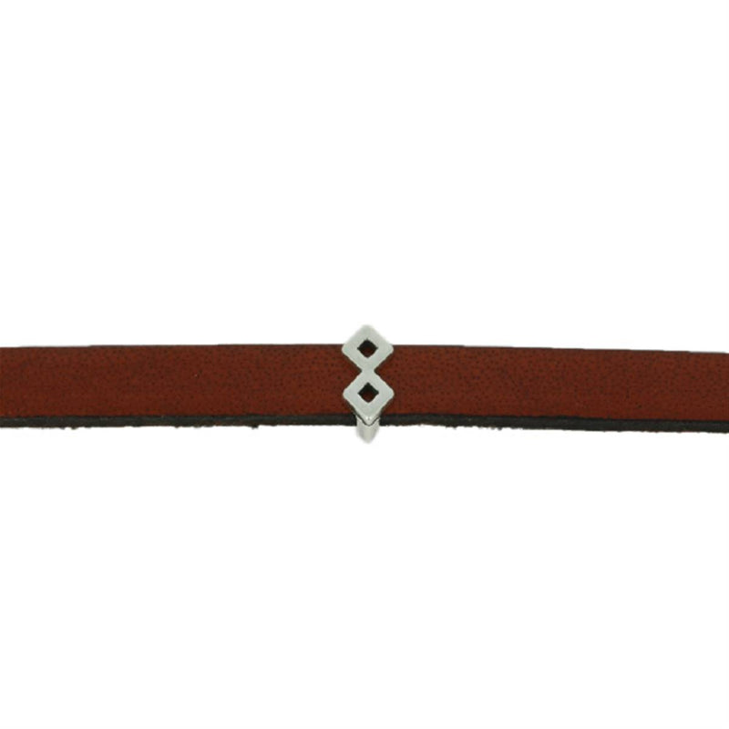 Schieber mit zwei Diamanten für ein Lederband von 10 mm Breite und maximal 2,5 mm Dicke. Ideal für Ihre Armband-, Schmuck- und Deko-Kreationen.Material: Zamak garantiert nickelfrei