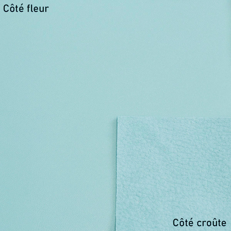 Entfliehen Sie mit diesem himmelblauen Leder! Diese sanfte und beruhigende Farbe verleiht einen Hauch von Gelassenheit und ihr leicht perlmuttartiges Finish verleiht Ihren Kreationen einen Hauch von Fantasie.