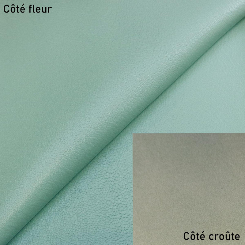 Werten Sie Ihre Kreationen mit diesem leicht perlmuttartigen , meergrünen Ziegenleder auf. Seine natürliche Textur und beruhigende Farbe verleihen all Ihren Projekten einen Hauch von Eleganz.